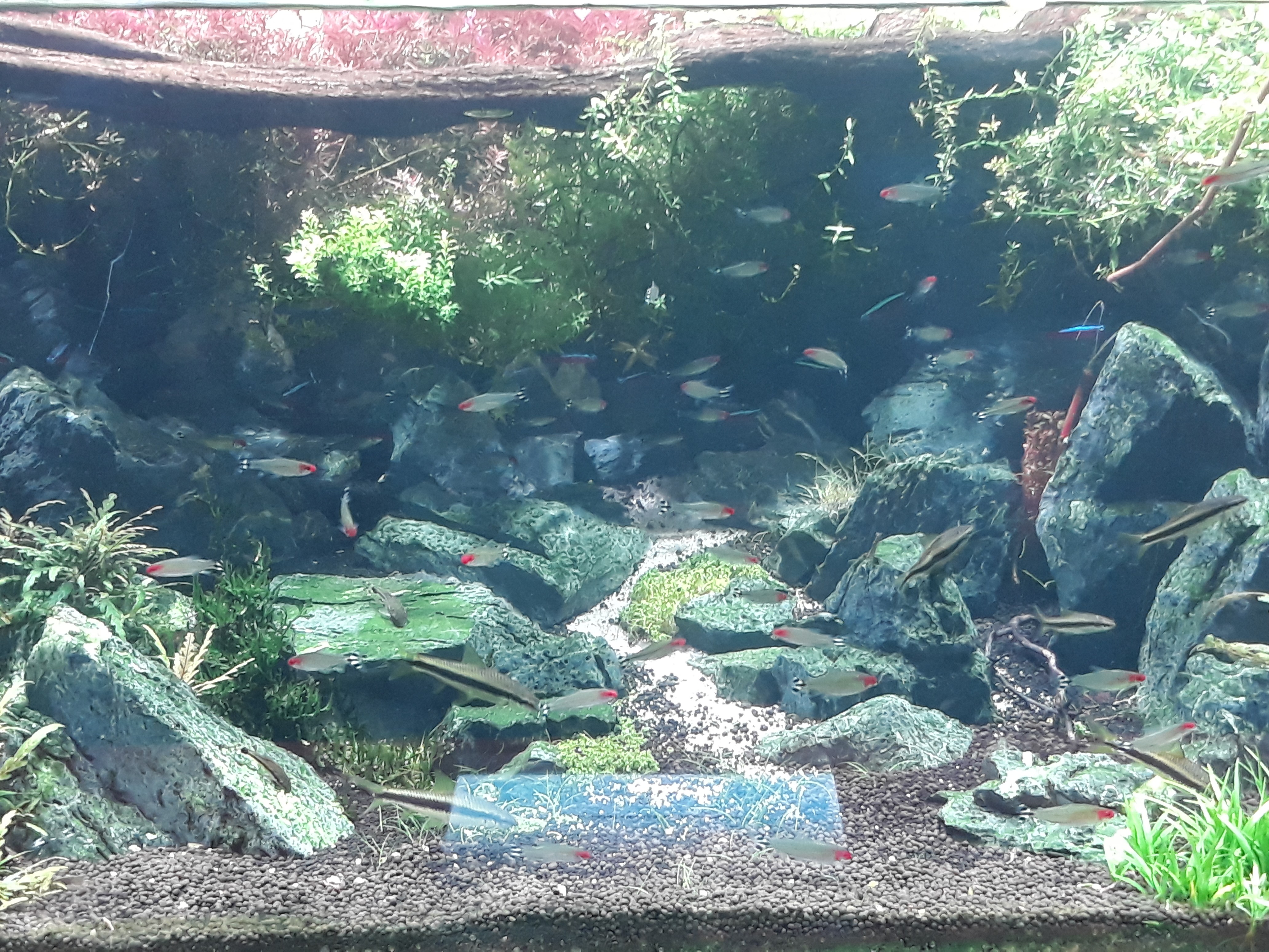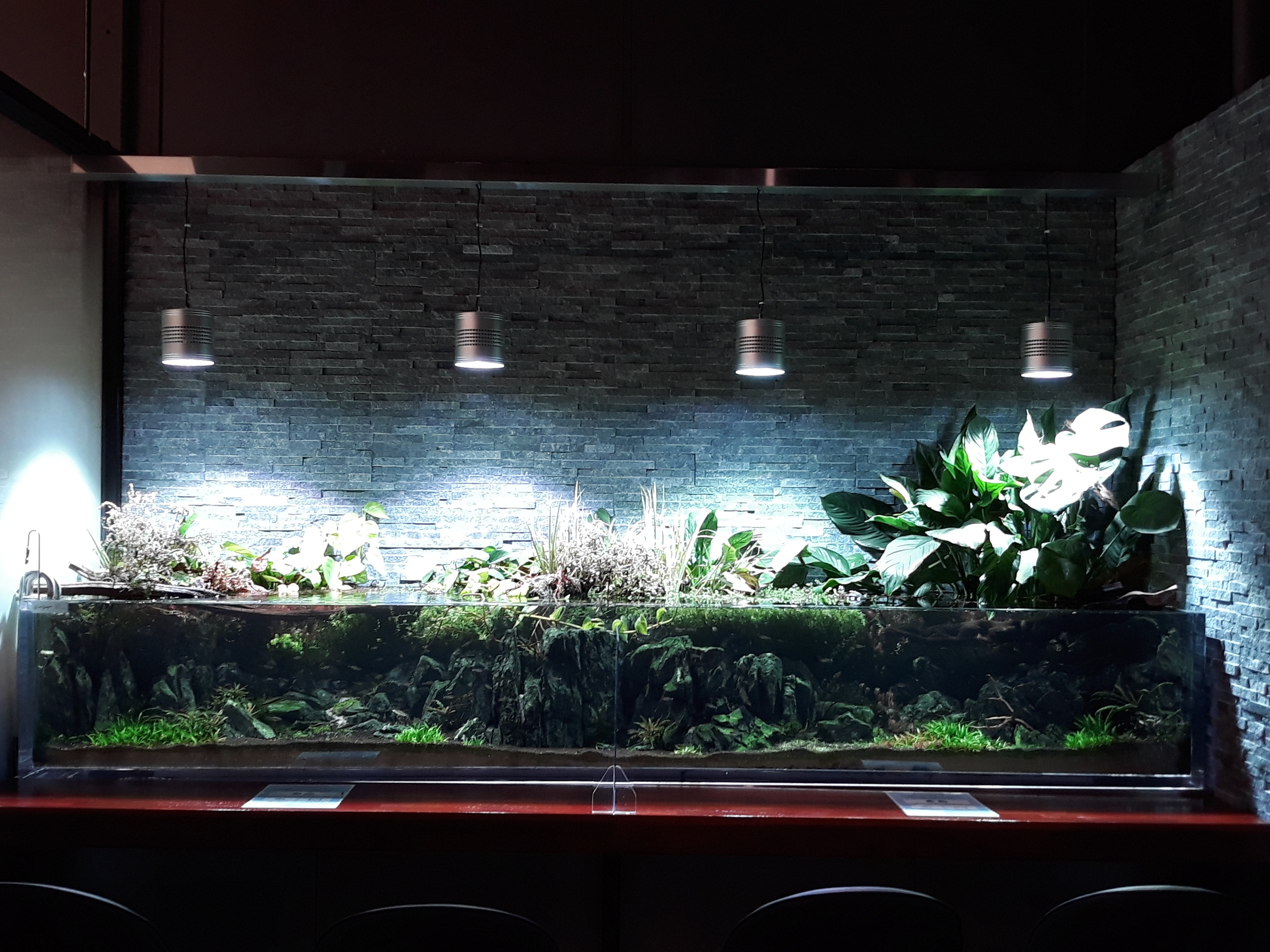 아쿠아가든 카페에는 수 많은 어항이 있는데 특징은 수초가 많다는 것이다. 수초가 많아 어항 하나 하나가 아마존 느낌이 나고, 수질도 좋아 물고기가 대우받고 살고 있다는 느낌이 든다.