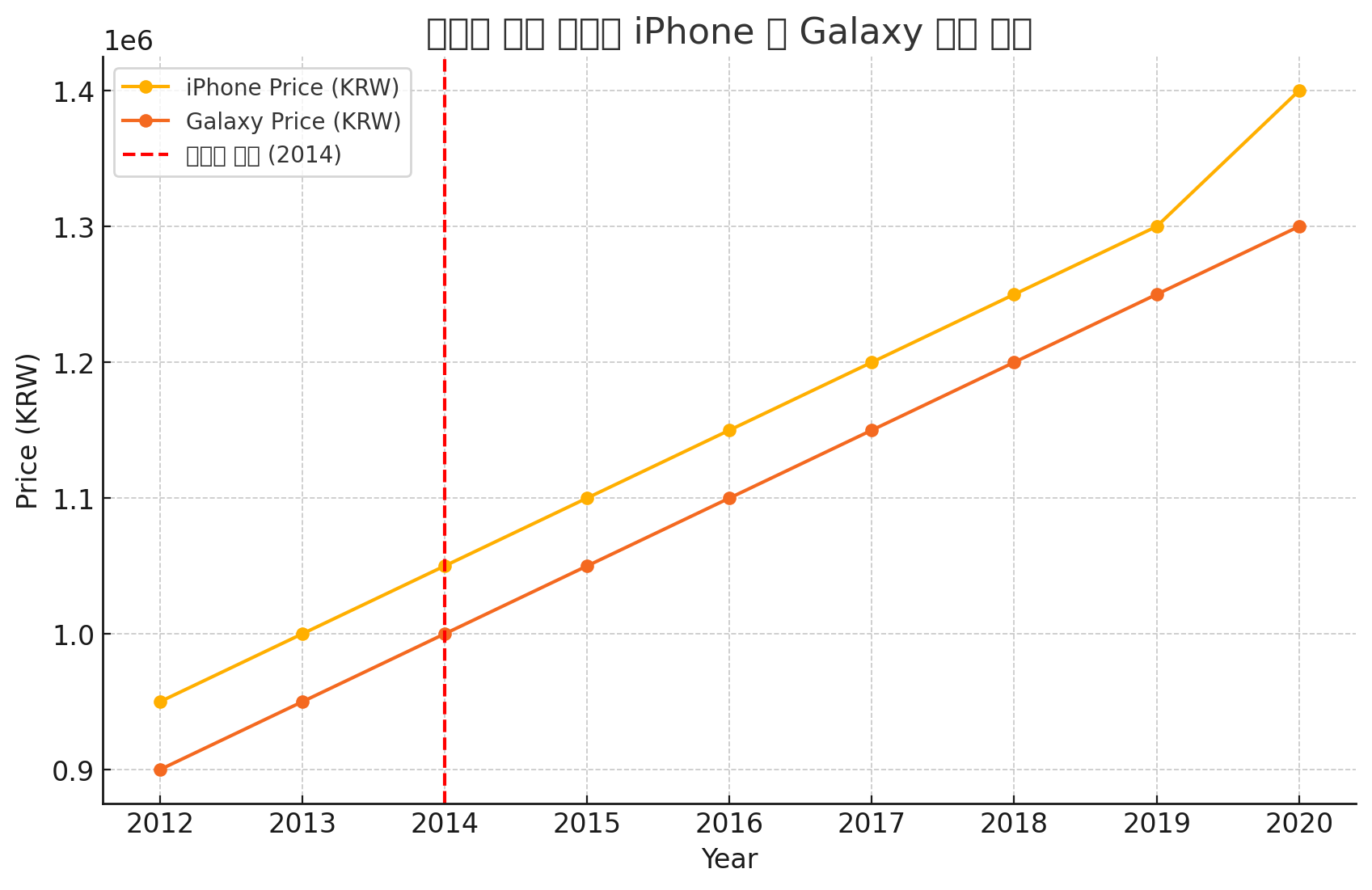 아이폰과 갤럭시 모두 10여년 전과 비교하여 가격이 많이 올랐다. 물론 그동안 기술의 발전과 스마트폰의 성능이 향상되어 가격의 상승은 어떻게 보면 예상 가능한 일이었다. 하지만 해가 거듭될수록 스마트폰의 가격은 상승의 폭이 성능 대비 높아져서 전 국민이 높은 가격에 스마트폰을 사는 상황이 되었다. 이에 ‘단통법’에 대한 논의가 나오게 되었다.